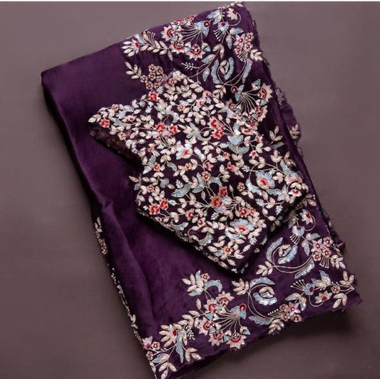 Designer Georgette Saree with Intricate Coding, Sequins & Real Mirror Work