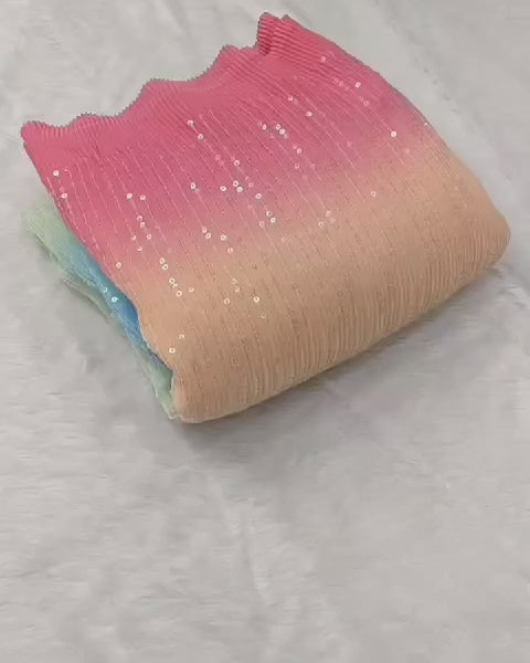 Belle couleur ombrée dans un travail de Georgette lourd Travail de broderie de paillettes avec Crush
