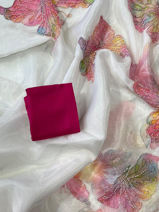 Sari en pur organza avec imprimé papillon élégant 🦋