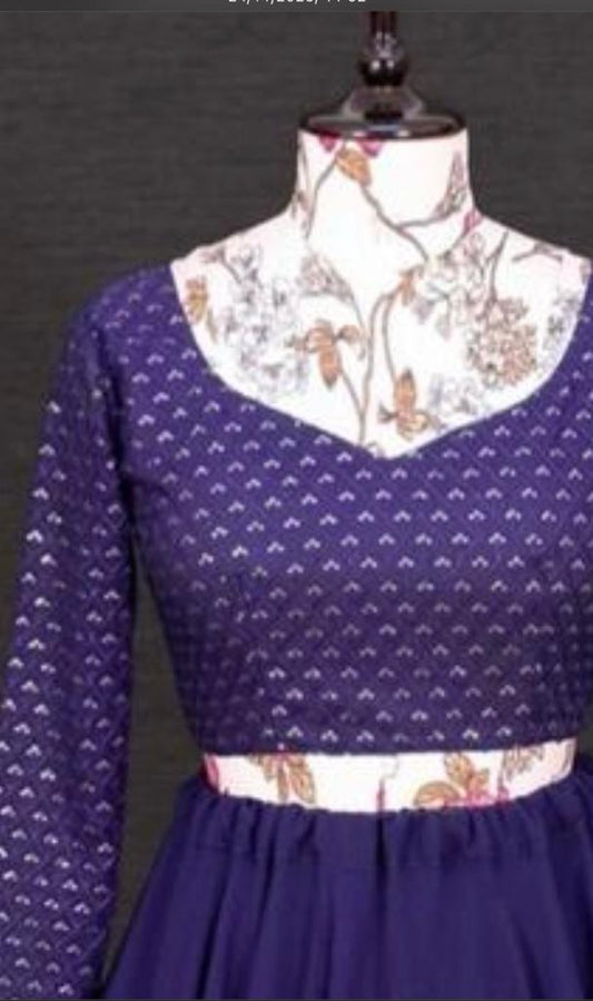 Faux Georgette et séquence de broderie lourde - Ensemble Top-Plazo et Dupatta entièrement cousu