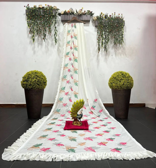 Harmonie gracieuse : Saree de créateur à volants avec Thred et séquence sur fausse georgette